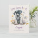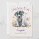 Fira glädjen över en ny lurvig familjemedlem med Hund Blommig Adoption Kort! Denna vackra akvarelldesign har en söt valp omgiven av livfulla blommor - perfekt för alla hundälskare. Det glada ”Live Love Bark” -meddelandet kommer säkert att lysa upp någons dag.
