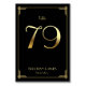 Great Gatsby Art Deco bröllopsbordskort med gyllt nummer 79 och utbytt text, där du kan lägga till dina namn och bröllopsdatum, tryckt på svart bakgrund