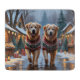 This festive design captures the joyful spirit of the holiday season, featuring an adorable dogs.Nestled in a winter wonderland, complete with a decorated Christmas tree, and beautifully wrapped presents. Snowflakes gently fall, adding a magical touch to the scene, while the vibrant colors of the holiday decorations create a warm and cheerful atmosphere.