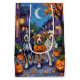 Bedårande Greater Swiss Mountain Dogs iklädda lekfulla Halloween-kostymer bär pumpakorgar medan de går runt och samlar godis under månbelyst himmel. Denna festliga design framhäver rasens robusta byggnad, trefärgade markeringar och milda uttryck, perfekt fångar den spöklika men roliga atmosfären på Halloween-natten. En hjärtvärmande firande för hundälskare och Halloween-fans.
