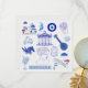 A minimalist design of Greek elements in shades of blue and white, perfect for travel lovers.