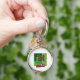 Green Abstraction with Twisted Red Square Rund Silverfärgad Nyckelring