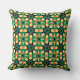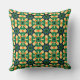 A Green, Blue, Orange And Black Colored Tiled Pattern Throw Pillow