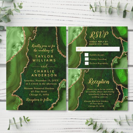 Green and Gold Agate Marble WeddingDesignad av Kirsty W