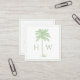 Green and White Palm Palmetto Tree Monogram Fyrkantigt Visitkort