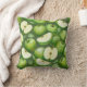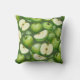 Pattern throw pillow with some green apples, half and whole.