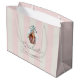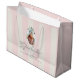This preppy and coquette graduation gift bag features your photo with a green graduation cap on a cream background with light pink stripes. Personalize it for your needs. You can find matching products at my store.