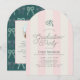 This preppy and coquette graduation party invitation features a green graduation cap on a cream background with light pink stripes. The reverse side features your photo and a text on a dark green background with a green bow pattern. Personalize it for your needs. You can find matching products at my store.