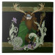 This striking Celtic-inspired artwork features a majestic forest god, Cernunnos or Green Man adorned with antlers and intricate blue face markings. Cloaked in deep green, he holds a wooden staff surrounded by elegant vines, purple flowers, and Celtic knotwork designs. The ornate border frames the image beautifully, creating a timeless piece that celebrates nature, mythology, and ancient Celtic art. Perfect for fantasy lovers, druids, and those who appreciate mystical and pagan themes.