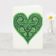 This card features a large, intricate green heart centered on a bright white background, with curling knot-like lines that loop and weave together like two paths meeting and staying close 💚. Deep forest tones slide into lighter lime and chartreuse, giving the heart a layered look that feels lively and full of motion. The interlaced swirls suggest closeness and connection, like a gentle bond that keeps circling back to itself without breaking. Fine marker-like strokes add texture, making the pattern feel intimate and carefully drawn rather than flat. A small St. Patrick’s Day greeting sits near the bottom in a matching green, set neatly so it doesn’t compete with the artwork ☘️. The wide white space around the heart keeps the focus on the detailed curves and the shifting shades inside. The heart’s interior is packed with continuous spirals and interweaving lines, with darker edges and lighter highlights tracing the turns.