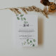 Detta gröna glädje eukalyptus hotellfäste kort är perfekt för ett enkelt bröllop. Designen har akvarell handritade eleganta botaniska eukalyptus grenar och blad.