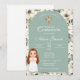 Green floral First Communion Invitation Inbjudningar