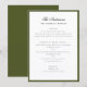 Complete your wedding tablescape with the Elegant Family Name Dark Olive Green Frame Wedding Dinner Menu. This sophisticated design features your family name in graceful calligraphy script, beautifully framed by a green border that blends timeless elegance with a modern touch. The minimalist layout and refined typography create a polished look perfect for contemporary or classic celebrations alike. All text elements and colors are fully customizable, allowing you to tailor every detail to match your wedding style and menu perfectly.