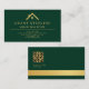 Promote your real estate brand with this luxury green and gold business card featuring a modern QR code for quick access to listings and contact information. The rich, elegant color palette and polished layout create a premium, professional impression—perfect for realtors, agents, and brokers who want a standout, print-ready design.