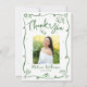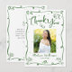 Make sure your favorite grad shows appreciation to all who supported their milestone event! Send out this quirky, playful, simple, modern, personalized photo thank you card. On the front, fun hunter green handwritten script typography and hand drawn graduation icon sketch doodles, along with your custom photo, overlay a minimal white background. Add the photo of your choice and personalize the custom text with your grad’s name, and class year. On the back, type in your custom message or delete the copy altogether so you can write your own handwritten note. Matching invites, address labels, banners, stickers, hand fans and other graduation goodies are also available in this trendy and stylish collection. Guaranteed to add a stylish touch to their correspondence!