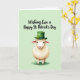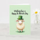 This card features a fluffy white sheep in a soft watercolor look, standing near the lower middle and looking straight at you with big dark eyes and a pink snout that feels sweet and friendly 💚. An emerald green top hat sits on its head, and a small shamrock on the brim adds a clear St. Patrick’s Day touch ☘️. The sheep’s fleece is shown with gentle curved lines and light shading that makes it seem cozy and touchable, like you could reach out and pet it. The background is a pale mint green wash that keeps the scene calm and lets the sheep stay the main focus. Above the sheep, the message “Wishing Ewe a Happy St. Patrick’s Day” is placed across the top in dark green lettering. The pun in “Ewe” pairs nicely with the sheep’s direct gaze, as if it’s sharing a quiet, affectionate hello with someone special. The lighting is soft and even, with no harsh shadows, and the hat’s green stands out against the creamy fleece and mint backdrop.