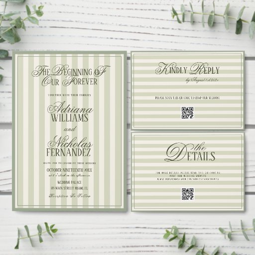 Green Ivory Striped Old Money Calligraphy Wedding Spara Datumet