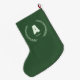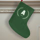 This elegant green Christmas stocking features a classic letter A monogram framed by a laurel wreath and personalized with any name. A timeless holiday keepsake, perfect for mantel décor, gift giving, or creating a coordinated family stocking set. Customize the name and make Christmas morning feel extra special.