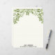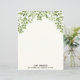 Sage green leaves and berries on a pale cornsilk-colored background makes a beautiful arched border at the top of this modern, and stylish stationery.