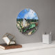 It's always time to train when you're an AFOL model railroader. Clock depicts a brick-built green Mountain 4-8-2 class locomotive hauling stock cars across a wilderness, all designed by Phoenix Train Works.