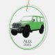 Ideal as a thoughtful gift for family, friends, or yourself, this personalized ornament blends durability, style, and sentimental value into one standout piece you’ll enjoy year after year. Green vehicle with white background.