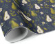 The pattern on this wrapping paper showcases beautifully hand-painted watercolor pears in lush green tones, surrounded by flowing leaves and subtle floral details. The deep navy background enhances the vibrancy of the artwork, creating a sophisticated botanical design that feels both organic and timeless.