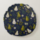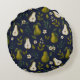 Green Pear Watercolor Pattern on Dark Blue Rund Kudde