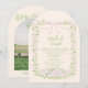 Green Pink Bow Floral Summer Arched Photo Wedding Inbjudningar