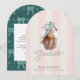 This preppy and coquette graduation announcement features your photo with a green graduation cap on a cream background with light pink stripes. Personalize it for your needs. You can find matching products at my store.