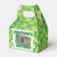 This customizable treat box features a pixel-style green design perfect for gamers. Add your child’s name and age to create a unique party favor for guests.