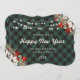Green Plaid Botanical String Lights New Year Card Julkort