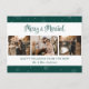 Green photo newlywed holiday postcard featuring snowflakes and a watercolor painting of poinsettia, connifer tree branches, holly and red berries. Easily personalize this festive newlywed holiday postcard with your photos, and text.