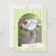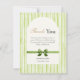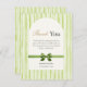 Wedding thank you cards in green stripes feature heartfelt "Thank You" message on front - with customizable names/date and bow. Back showcases arched custom couple photo with monogram, perfect for post‑wedding notes.