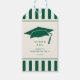 Make your graduation party favors stand out with our chic and customizable graduation favor tags! These stylish tags feature a sleek graduation cap and elegant green stripes on a warm cream background. Add a personal touch by including the graduate's name and date to make it truly special.