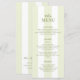 Set the tone for your special day with this timeless and sophisticated wedding menu card, featuring soft sage green vertical stripes and a casual handwritten typography. The delicate color palette creates a fresh, romantic feel, perfect for an outdoor summer venue.