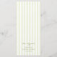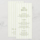 Set the tone for your special day with this timeless and sophisticated wedding menu card, featuring soft sage green vertical stripes and a casual handwritten typography. The delicate color palette creates a fresh, romantic feel, perfect for an outdoor summer venue.