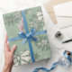 Green Toile Christmas Wreath Pattern Wrapping Paper Sheet. Pretty shades of green with complimentary bow design. Perfect paper for gift wrap, crafting and scrapbooking.