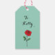 A green, whimsical, sketched red rose. You can add a name, monogram, or other custom text in a modern black font. On the front, you have space to add to, including the person's name, and on the back, the person's name and who from.