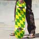 Geometric Green and Yellow Color Harlequin Diamonds Checkered Shapes Pattern Design