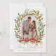 Den här chicen har du ett julkort med helgdag i bågform med vintern blad/grönt och en röd båge/ribbon på krämbakgrund. Baksidan har ett foto och ett meddelande på gröntens bakgrund. Anpassa den efter dina behov. Du hittar matchande produkter i min butik.