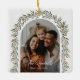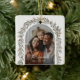En festive 2-fotojulprydnad med handmålad vattenfärgad garland och modern namn-typografi. Baksidan har ett andra foto. Klicka på knappen Redigera om du vill anpassa designen med dina detaljer.