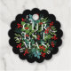 Ord CHRISTMAS i vacker typografi sitter på löv och bär på svart bakgrund (eller färg) på denna runda, skalopade part gynnar märkre. MATCHING-objekt i vår butik.