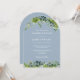 Greenery Blommigt Arch Dusty Blue Monogram Bröllop Inbjudningar