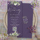 En gigantisk bröllopsinbjudan för blommigt med elegantens kalligrafi-skript, typografi och bröllop webbplats QR-kod på lila bakgrund. Designad av Thisisnotme©
