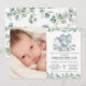 Greenery Blue Elephant Baptism Christening Photo Inbjudningar
