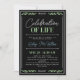 Firande i livets inbjudan i svart med grönt, ett blått namnteckning skript och grönt utan foto.