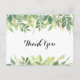 Detta gigantiska botaniska lövkort är perfekt för ett enkelt bröllop. Denna vackra vattenfärgsdesign har en botanisk grönt bladverk. Anpassa vykortets baksida, inklusive namn, returadress och ett tackmeddelande. Du kan också lämna att meddelandemallsavsnittet är ogiltigt om du vill skapa några ord på varje kort när de har anlänt. De här korten kan användas för bröllop, möhippa eller när du vill tacka.