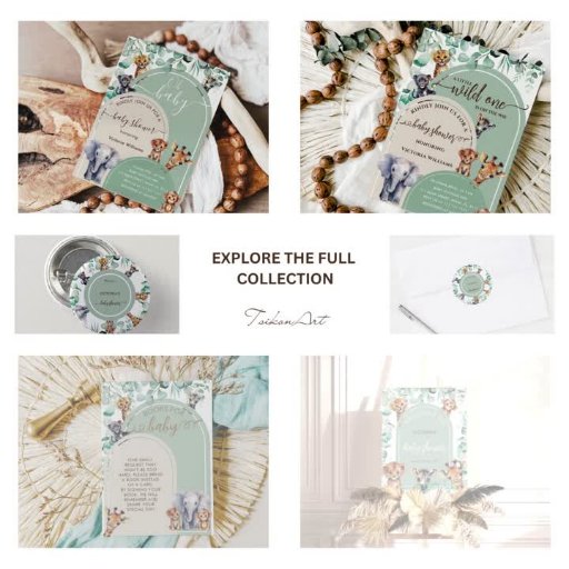 Safari Animals In Sage Green Baby ShowerDesignad av Tsikona M