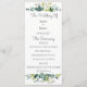 Vattenfärgad bladbukett i söt skuggor av grönt och grått bröllopsprogram. Anpassa teckensnittet stil, färg och storlekt. Bakgrunden till färg kan också anpassas så att den stämmer överens med ditt tema. Matchande objekt finns i vår samling i Greenery Bröllop.