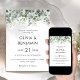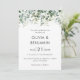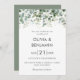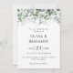Bröllopsinbjudan, med eukalyptus greenery leafy gräns, på vit bakgrund, lätt personlig.